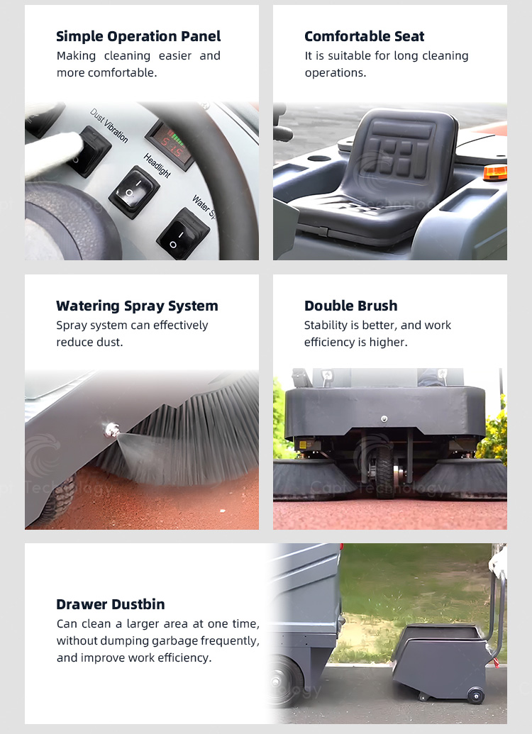 2.The adjustable driver seat can accommodate operators of different heights and is suitable for long cleaning operations.