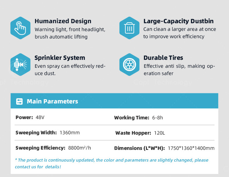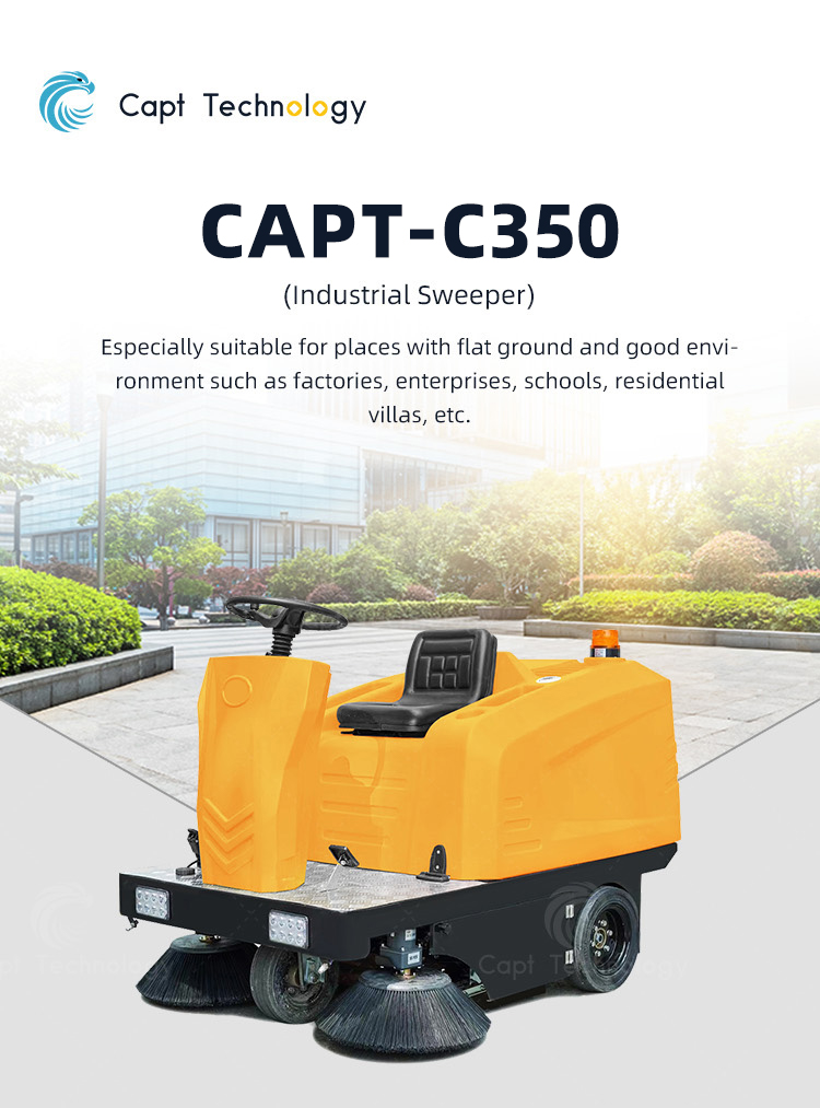 This riding sweeper is mainly suitable for places with flat ground and relatively good environment, such as municipal roads, property communities, airports, enterprises, large garages, colleges and universities, and high-end villa areas.