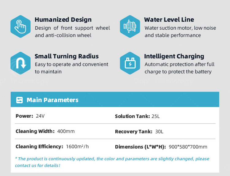 It is especially for small area cleaning of ceramic tile, marble, epoxy resin and cement floors, which is widely used in supermarket, government office, hospital, hotel, terminal building, subway platform and etc.