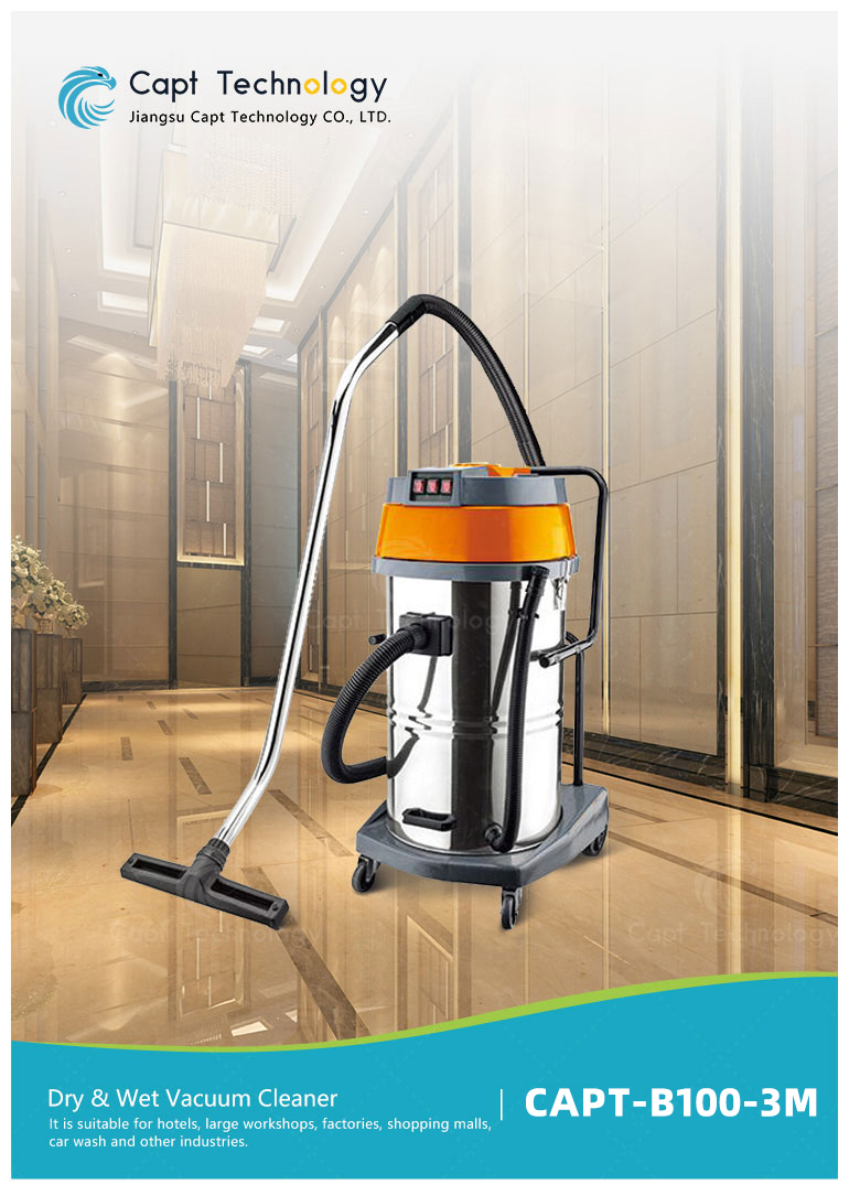 CAPT-B100-3M is wet and dry dual-purpose dust suction and water suction machine. It is suitable for hotels, large workshops, factories, shopping malls, car wash and other industries. The machine designed with strong suction, stainless steel barrel, and crush resistance, durable, longer life.