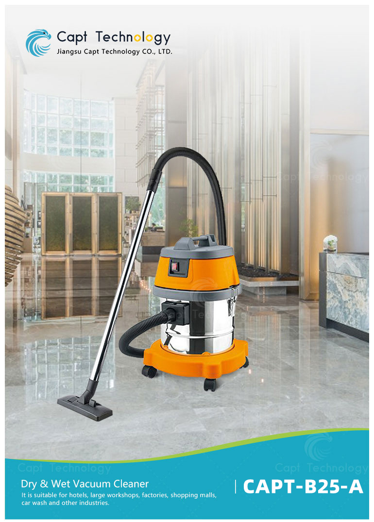 CAPT-B25-A is wet and dry dual-purpose dust suction and water suction machine. It is suitable for hotels, large workshops, factories, shopping malls, car wash and other industries. The machine designed with strong suction, stainless steel barrel, crush resistance, durable, longer life.