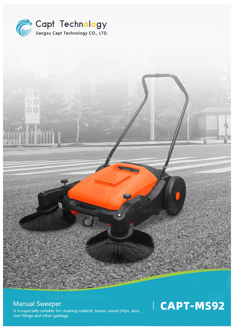 This sweeper is exquisite in design and unique in technology. The whole machine does not need any electromechanical power. The rotation of the tire drives the belt, then drive to rotate the inner "roller brush" and the front two "side brushes", Just push and walk and you can easily recycle your rubbish to the bin.