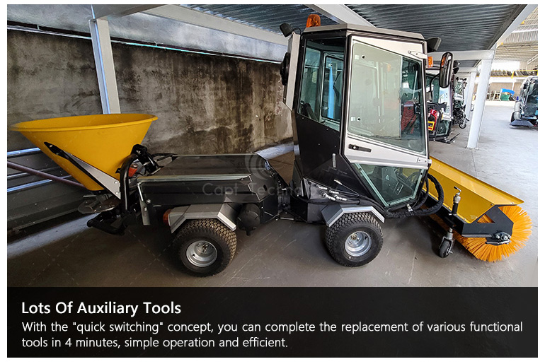 2. Snow removal operation in winter: It can be equipped with snowboard, snow removal brush and snow melting spreader. It is very suitable for snow removal in residential areas, sidewalks and parks.